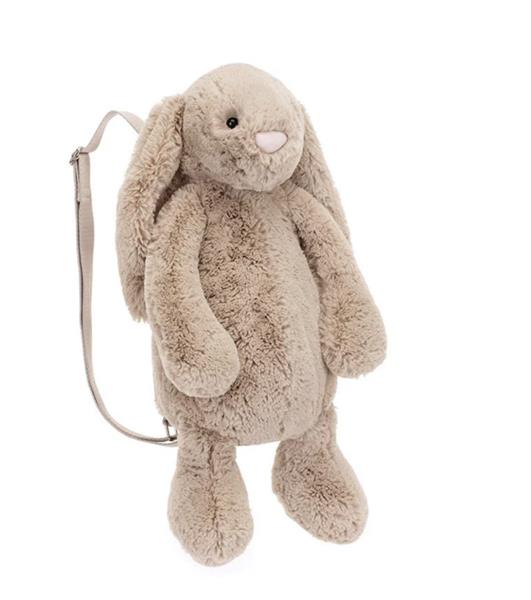 Bashful Beige Bunny Backpack is as useful as she is iconic! In soft beige fur, Bashful Bunny keeps your essentials safe in her tummy with a zip closure with Jellycat logo disc. With wide, adjustable straps in a matching beige, Bashful Beige Bunny Backpack is the perfect companion for everyone!