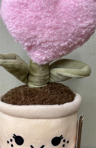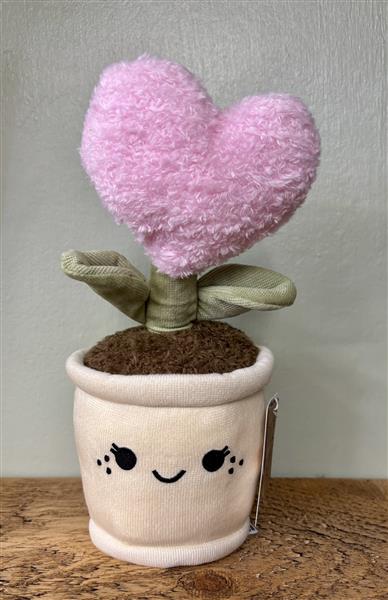 A decorative fabric love heart plant adorned with a smiley face , perfect as an everlasting gift.
