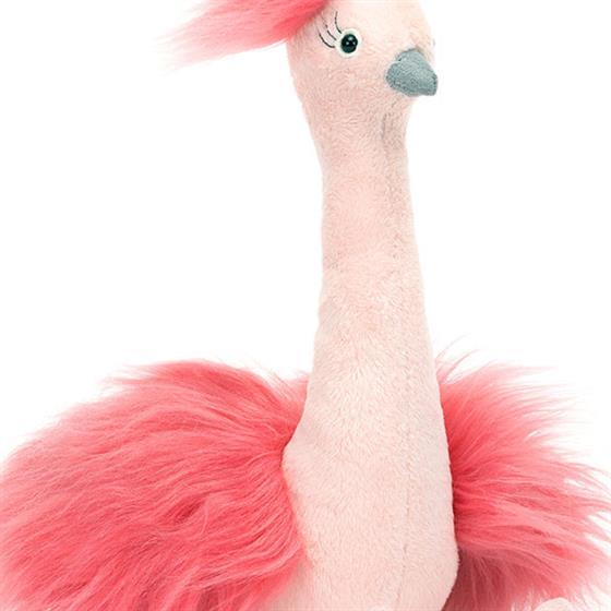Fou Fou Ostrich is the savanna stylista! Divinely decadent, this blush blancmange bird has the fluffiest wings and a matching headpiece! With stitchy curled lashes, a suedey grey beak and stompy long legs, this opulent ostrich brings the glamour. It's always an eggstravaganza!