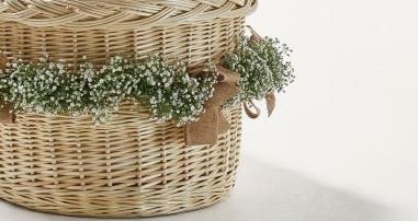 Simple and elegant garland created with Gypsophila and Hessian Bows.
