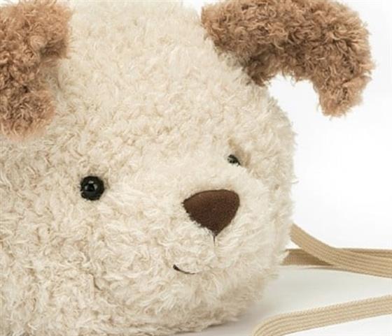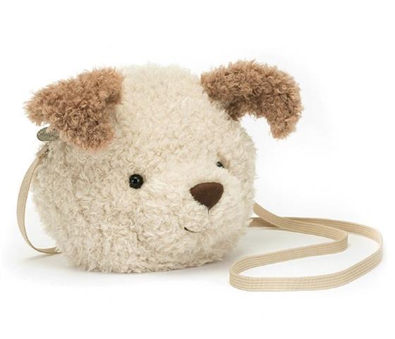 Little Pup Bag is a statement cutie in gorgeously scruffy butterscotch fur. With toffee fold ears, a black suedette nose and a webbed cross-body strap, this cotton-lined bag is ready for a walk.