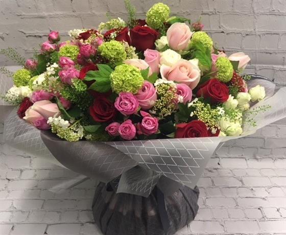 An opulent selection of stunning roses perfect for when you need that extra something! Presented in our signature grey aqua pack box.