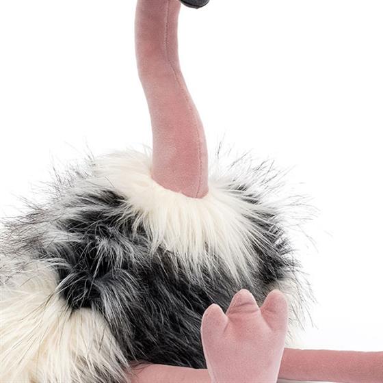 Why be modest when you could be magnificent? That's Ramonda Ostrich's motto. This elegant bird has a long sorbet neck, matching big feet and huge speedy legs! A cloud of swirling black and cream feathers, with dancing flecks and a suedey grey beak, Ramonda's stomping the runway!