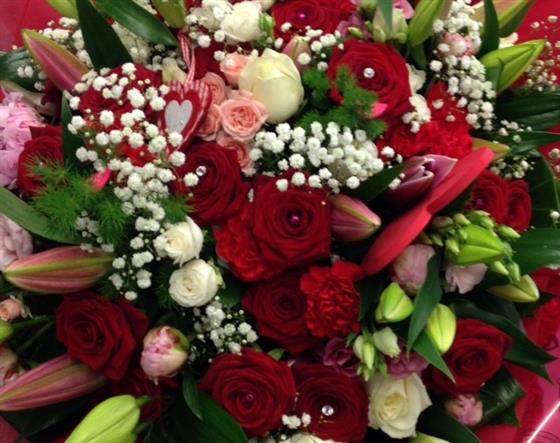 A romantic selection of flowers arranged as a hand tied, presented in our signature grey Aqua pack box. Flowers and foliage's may vary to the image shown.