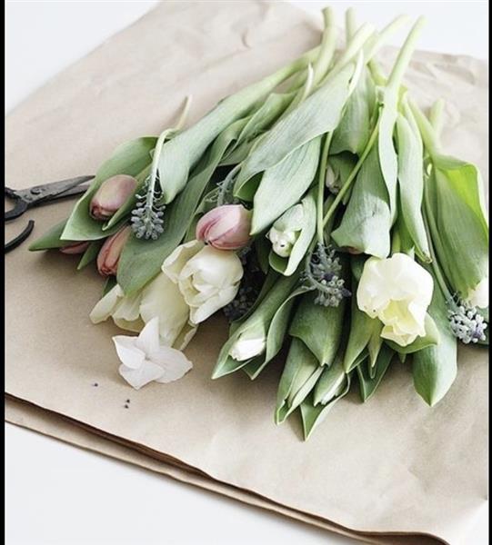 Colours and variety of flowers will vary depending on availability. Presented in craft paper as a tied bouquet with no water.